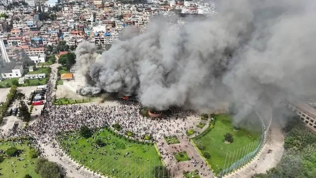 ونشر الجيش قواته في الشوارع التي لا تزال ممتلئة بالمركبات المحترقة وأكوام من المعدن الملتوي، فيما يواصل رجال الإطفاء التابعون للجيش إخماد الحرائق في القاعة الرئيسية داخل البرلمان، وأجزائه الخارجية بعد أن أضرم المتظاهرون الغاضبون النار أمس، على خلفية حظر الحكومة لوسائل التواصل الاجتماعي.