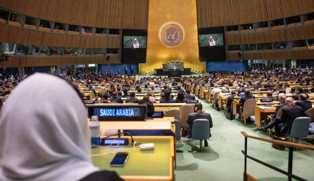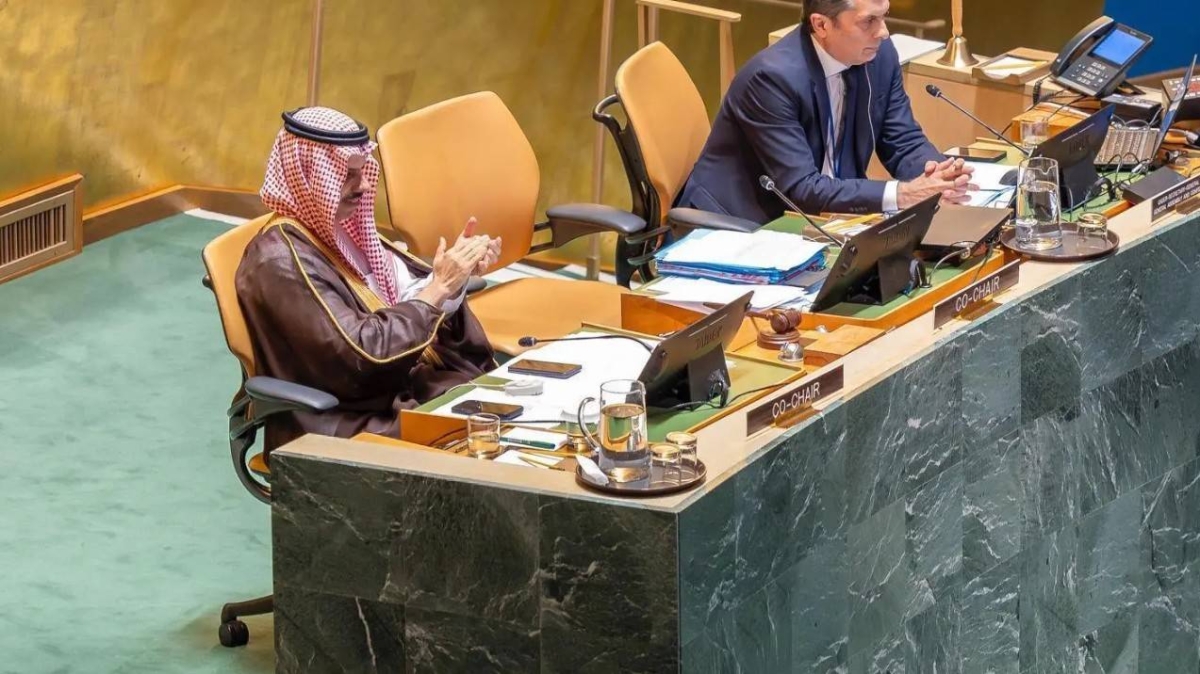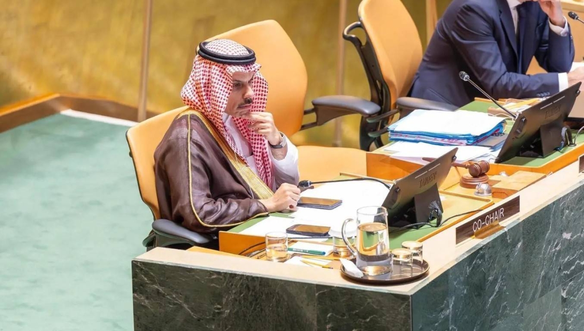 On behalf of Crown Prince and Prime Minister Mohammed bin Salman, and in partnership with French President Emmanuel Macron, Foreign Minister Prince Faisal bin Farhan bin Abdullah chaired the opening session of the International Conference on the Peaceful Settlement of the Palestinian Issue and the Implementation of the Two-State Solution at the Leaders' Level, held at the United Nations General Assembly in New York City.