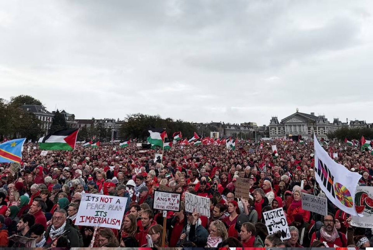 The Dutch capital Amsterdam witnessed a massive protest today (Sunday), with around 250,000 people participating, according to estimates from organizers and local police, demanding the Dutch government take a stronger stance against the Israeli war in Gaza.