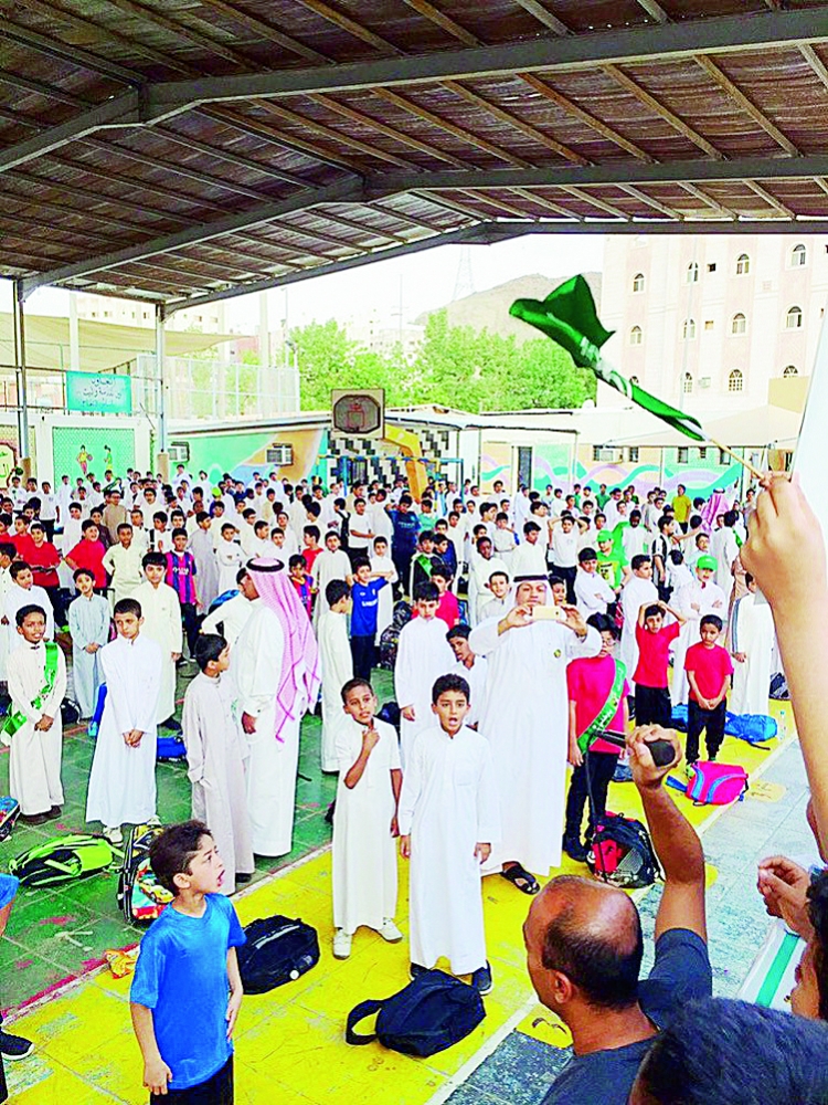 طلاب المدرسة خلال الاحتفالية. (عكاظ)