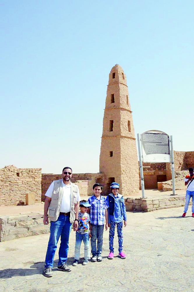 أحد أعضاء هيئة التدريس مع أبنائه خلال الرحلة الترفيهية. (عكاظ)