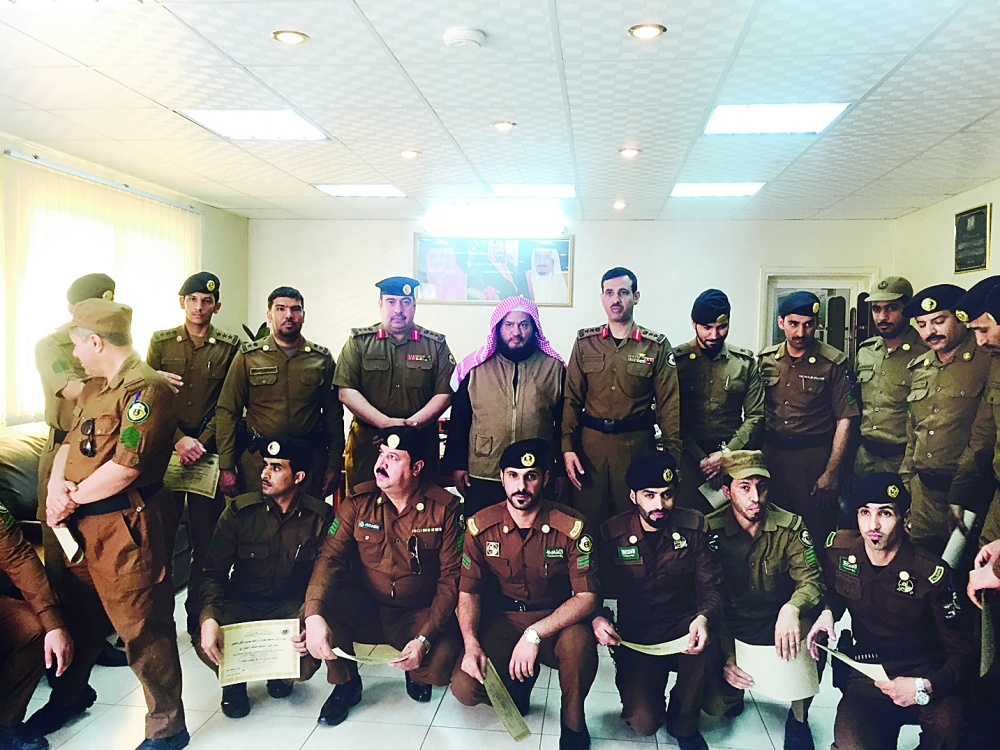 مدير الشؤون الإسلامية مع منسوبي إدارة المرور. (عكاظ)
