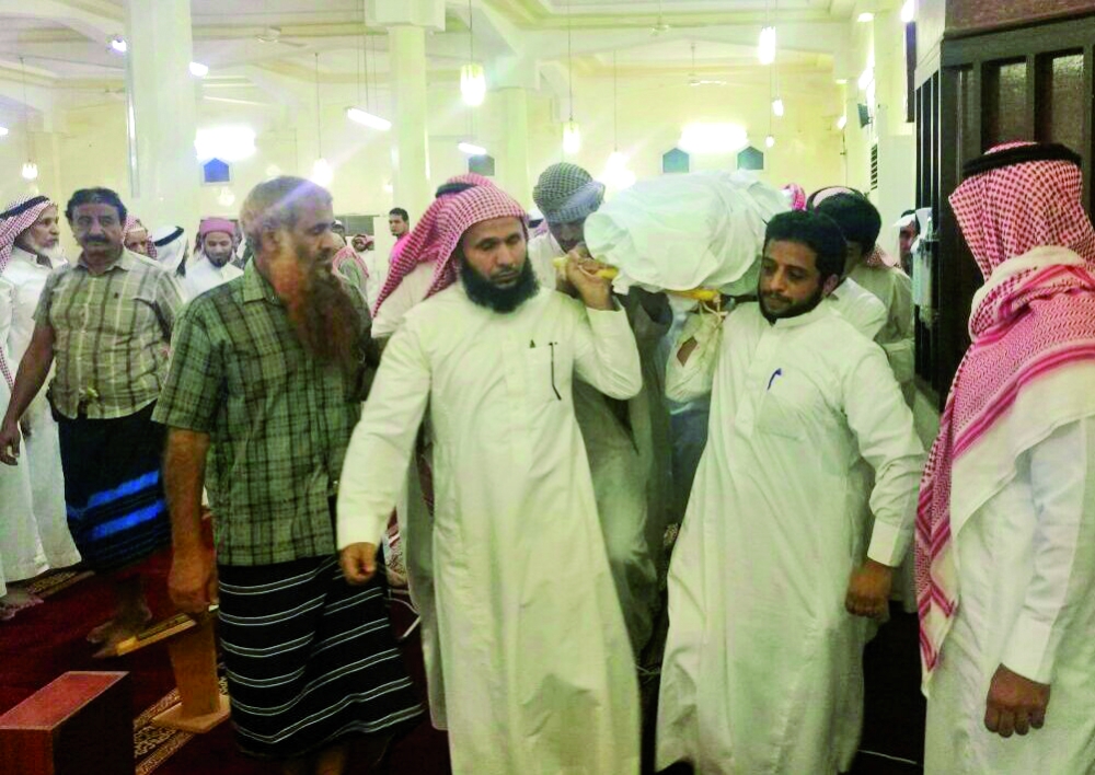 الشهيد بعد الصلاة عليه. (عكاظ)