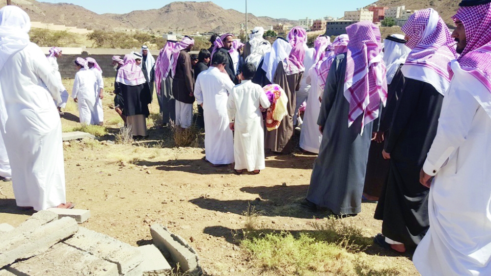 مشيعون يوارون جثمان الفقيدة في مقبرة هياج. (عكاظ)