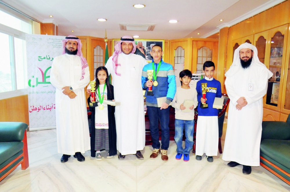 مدير تعليم الخرج أثناء تكريمه الفائزين. (عكاظ)