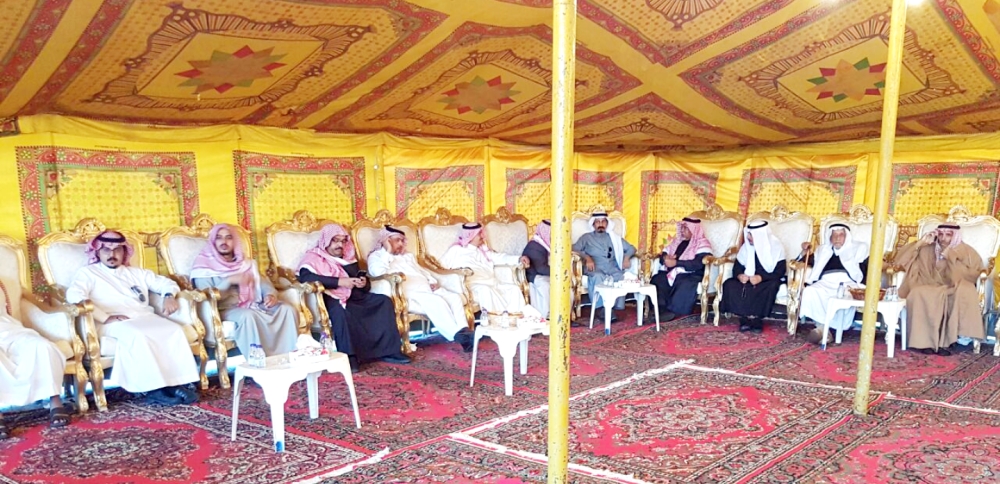 أسرة أبو عبثان في مجلس العزاﺀ. (عكاظ)