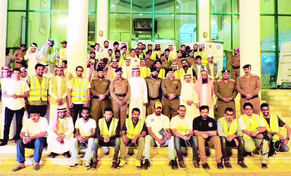 مدير الدفاع المدني بجازان مع فريق ساند التطوعي. (عكاظ)