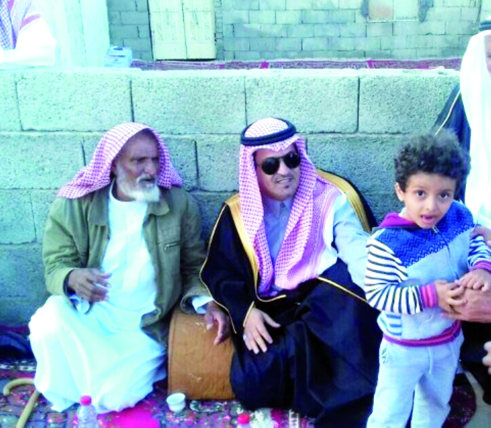 محافظ العقيق مع والد الشهيد الغامدي (عكاظ)