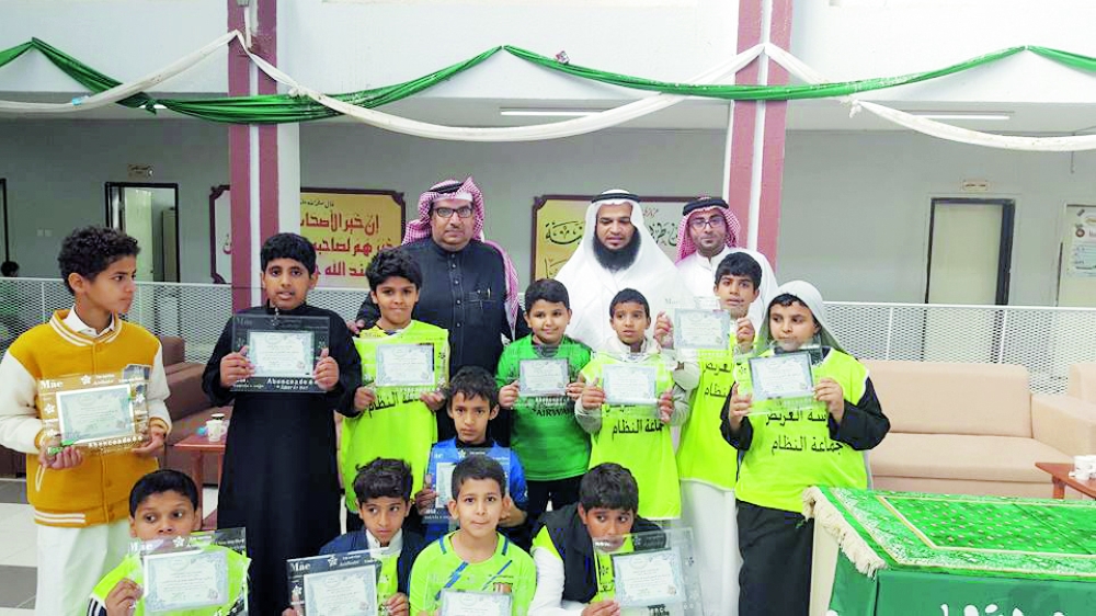 الطلاب المكرمون بعد تسليمهم شهاداتهم. (عكاظ)