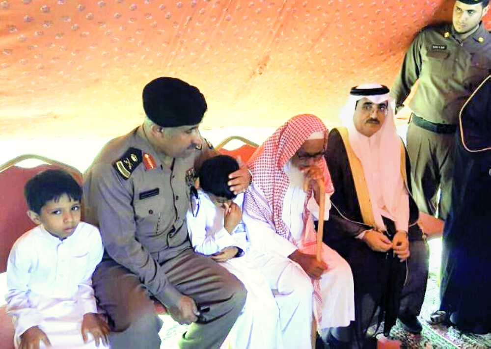 مدير شرطة عسير القرزعي مع أبناء الفقيد. (عكاظ)