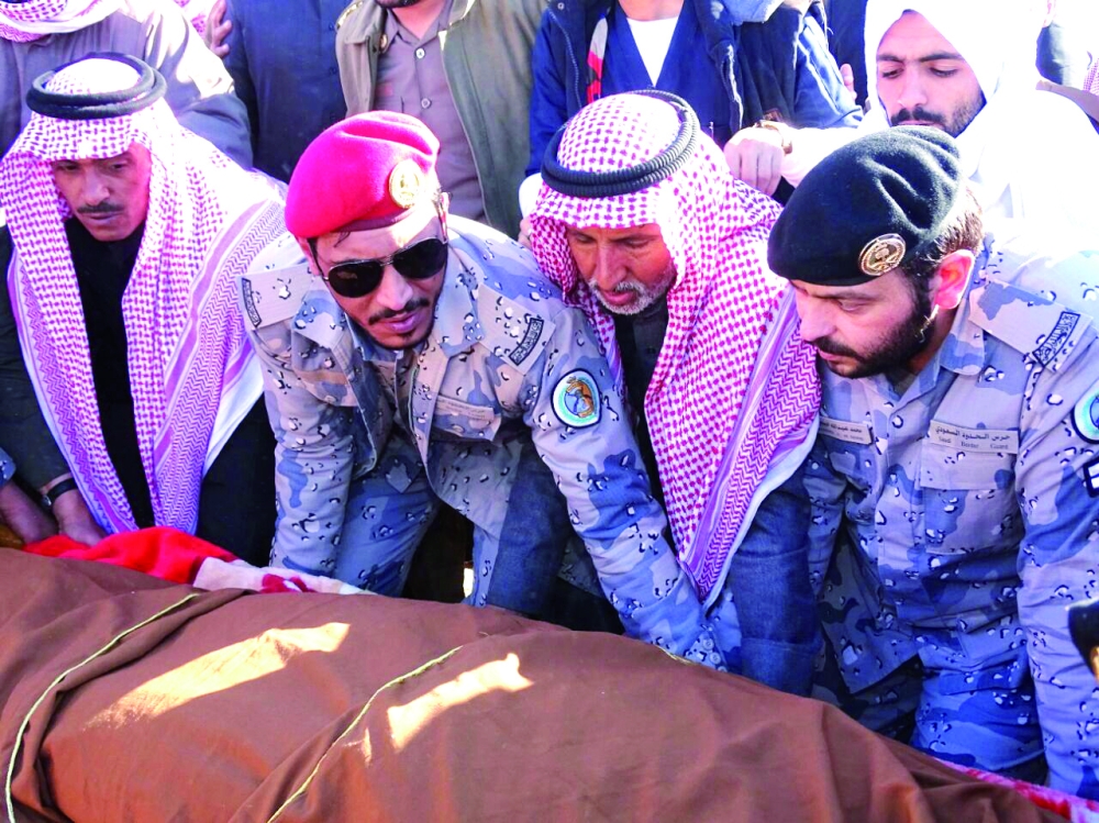 مشيعون يحملون جثمان الشهيد الشراري بعد الصلاة عليه. (عكاظ)