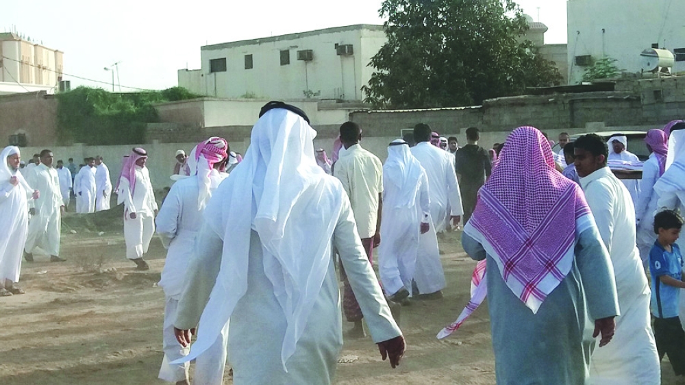 مشيعو الفقيدين في مقبرة ضمد الكبرى. (عكاظ)