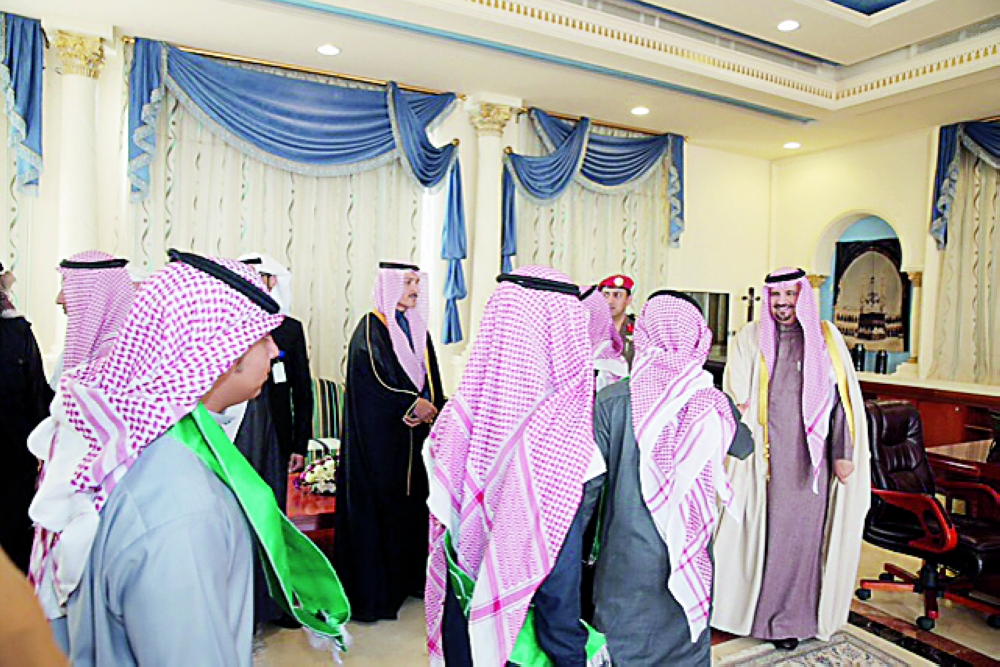 أمير الجوف مستقبلا مدير السياحة والوفد الطلابي. (عكاظ)