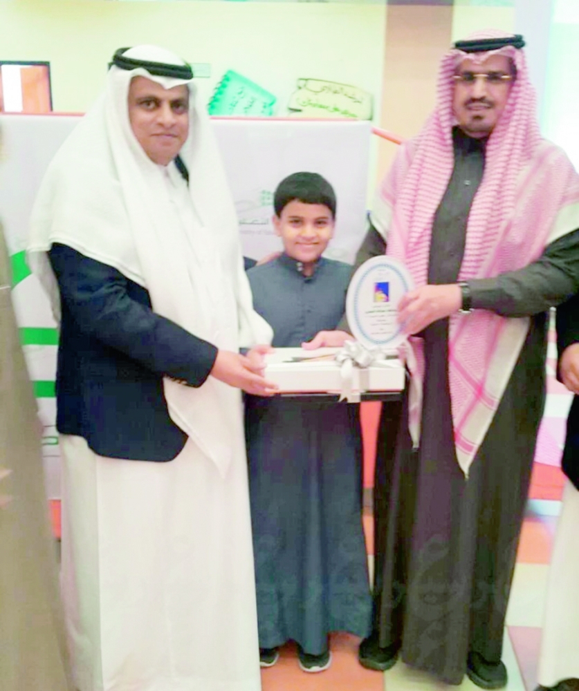 كرم مدير تعليم عسير جلوي آل كركمان ومساعده للشؤون التعليمية سعد الجوني الطالب عبدالملك عبدالله الأسمري الحاصل على المركز الثالث على مستوى العالم في مسابقة الخوارزمي الصغير (الرياضيات الذهنية) بكوريا، بحضور جميع منسوبي مدرسة تحفيظ القرآن الكريم بأبها، وبإشراف وكيل المدرسة محمد عقران.