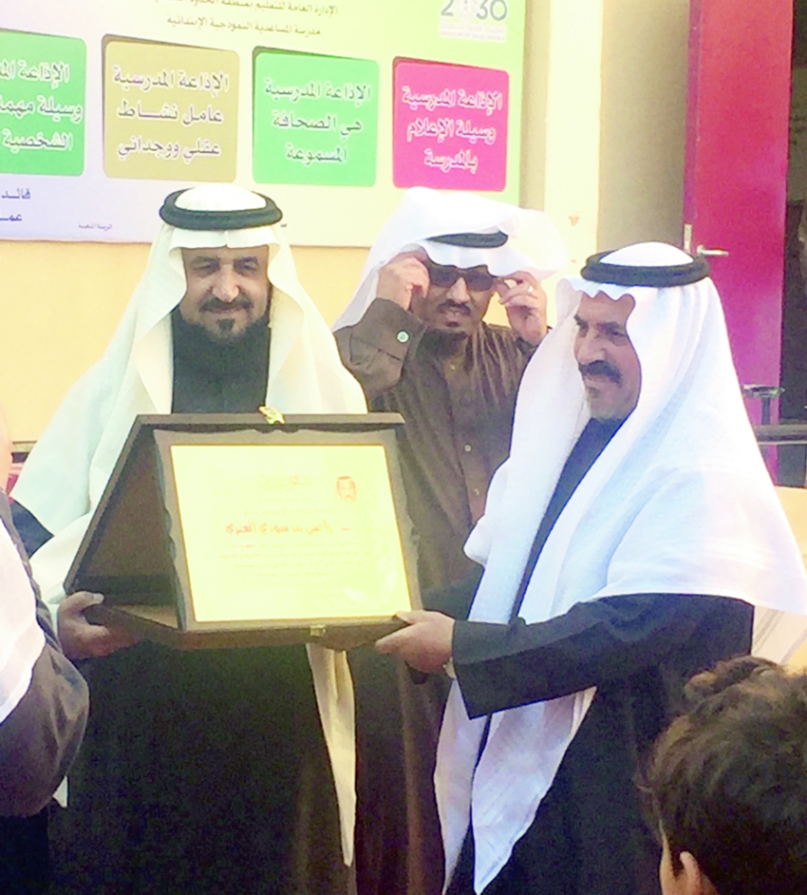 وأقيمت احتفالية بهذه المناسبة، حضرها مدير تعليم الحدود الشمالية عبدالرحمن القريشي، ومساعده للشؤون المدرسية عباس العنزي، ومدير الإشراف التربوي محمد العطيوي، وعدد من التربويين، وأولياء الأمور، وزملاء المعلم الحاليين والسابقين.
