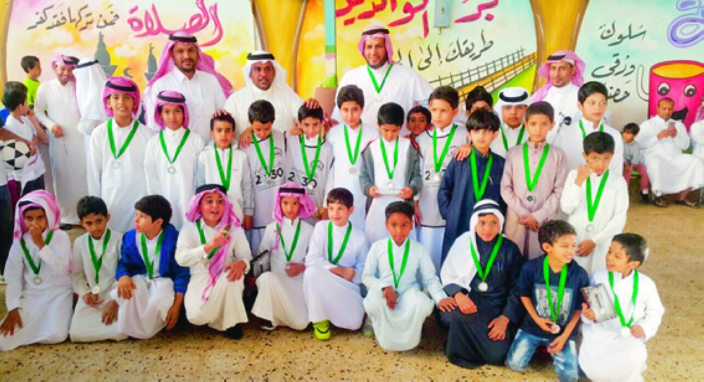 الطلاب المميزون عقب تكريمهم. (عكاظ)