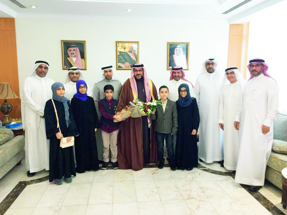استقبل محافظ القطيف خالد الصفيان، الطلاب الفائزين بمسابقة الرياضيات الذهنية (الخوارزمي الصغير) التي أقيمت أخيرا في كوريا الجنوبية وحققوا فيها المركزين الثاني والثالث على مستوى العالم.