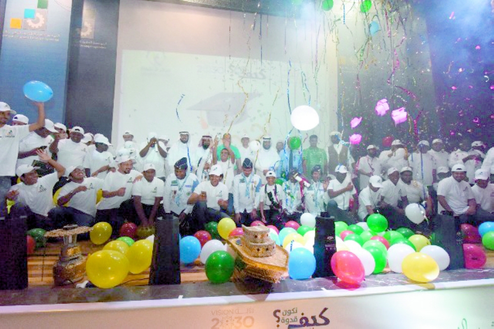 المتدربون يحتفلون بتخرجهم أمس. (عكاظ)
