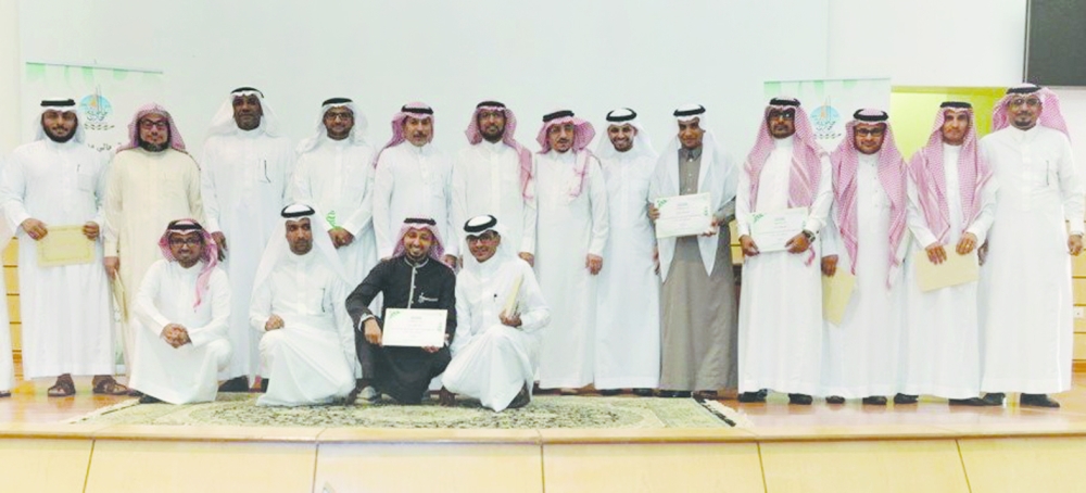مدير الجامعة مع المكرمين في صورة تذكارية. (عكاظ)