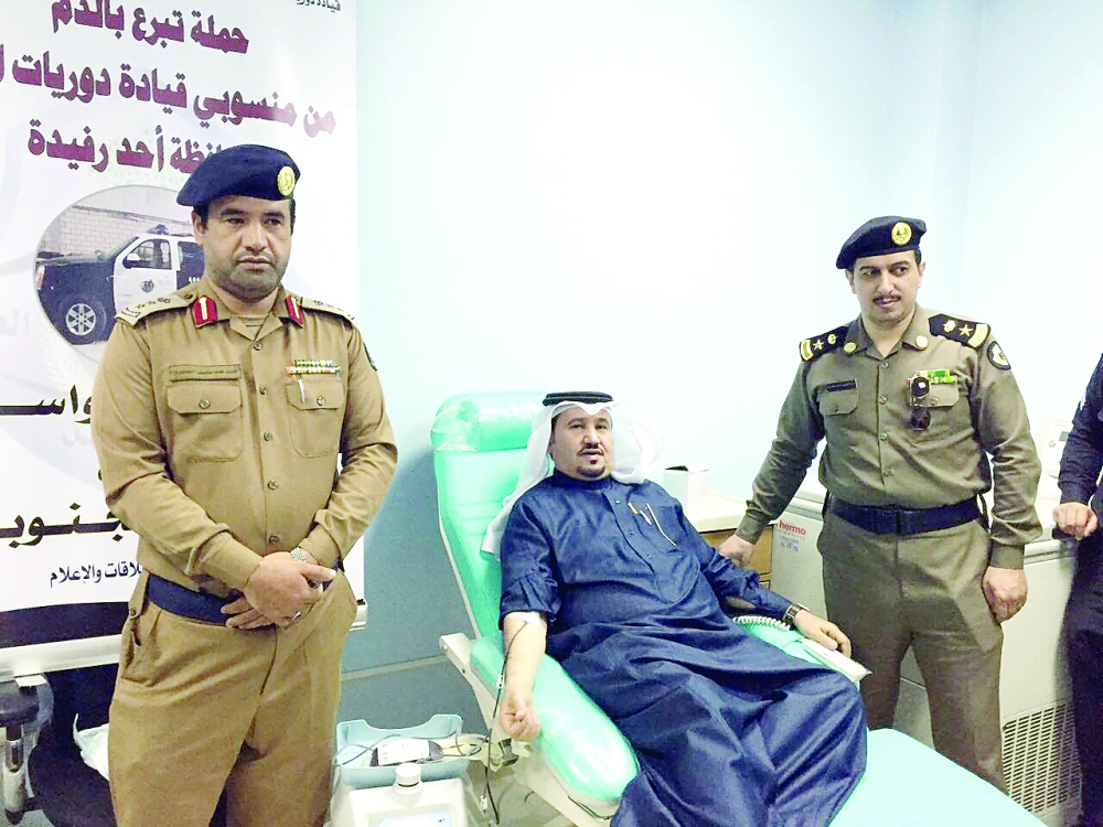 تقدم محافظ أحد رفيدة سعيد بن علي بن دلبوح، المتبرعين بالدم من إدارة الدوريات الأمنية، ضمن حملتها التي انطلقت الخميس الماضي في مستشفى المحافظة للتبرع بالدم لمصابي الحد الجنوبي. وقال مدير القطاع الصحي، المشرف العام على مستشفى المحافظة الأخصائي علي سالم آل زاحم، إن دور الجهات الأمنية لم يقتصر على العمل الميداني، بل تعداه إلى التبرع بدمائهم لزملائهم المصابين، وفي مقدمة المتبرعين إلى جانب محافظ أحد رفيدة مدير شرطة المحافظة المقدم عبدالعزيز العمري، قائد الدوريات الأمنية المقدم عبدالرحمن الخريص، ومدير الدفاع المدني العقيد عبدالله الجابري.