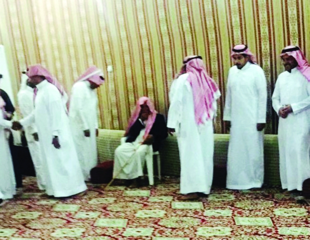 أسرة المقاطي يستقبلون المعزين. (عكاظ)