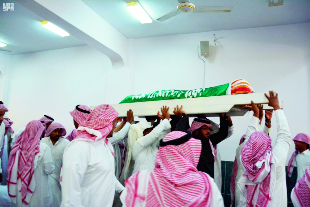 جثمان الشهيد محمولاً إلى مقبرة رجال ألمع.