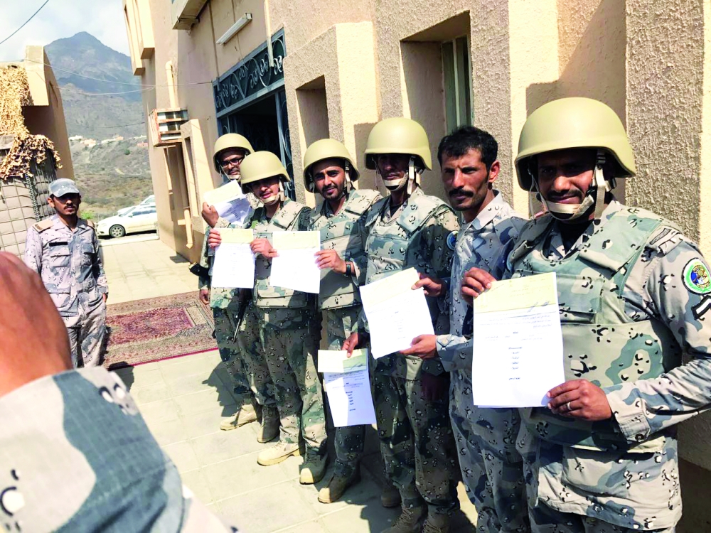 أفراد حرس الحدود بعد تكريمهم. (عكاظ)