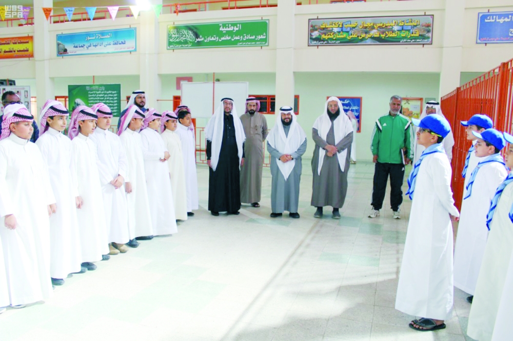 منسوبو التعليم مع أبناء المرابطين والشهداء. (عكاظ)