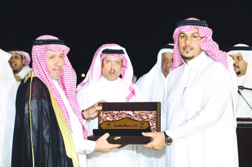 الغامدي متسلما هدية تذكارية. (عكاظ)