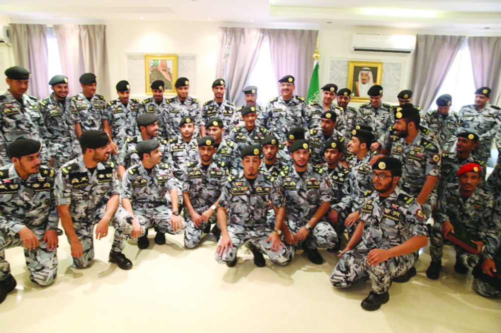 اللواء الخليوي مع الضباط الخريجين. (عكاظ)