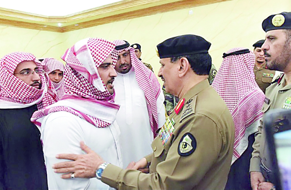 نقل مدير الأمن العام الفريق عثمان بن ناصر المحرج، أمس (الخميس)، تعازي نائب خادم الحرمين الشريفين الأمير محمد بن نايف بن عبدالعزيز لوالد وأشقاء وذوي الشهيد الجندي أول فهد قاعد الرويلي. وكان الفريق المحرج زار ذوي الرويلي بمركز هديب في مدينة سكاكا بمنطقة الجوف، سائلا المولى القدير أن يتغمده بواسع رحمته، وأن يلهم أهله وذويه الصبر والسلوان، وأن يتقبله من الشهداء والصالحين، مؤكدا أن المصاب مصاب الجميع، وأن العزاء للوطن كافة قبل أن يكون لأسرته. وعبر والد الشهيد قاعد مكاتل الرويلي عن تقديره لولاة الأمر على تعازيهم ومواساتهم، ما يجسد عمق الروابط بين القيادة والمواطن، مؤكدا أن استشهاد ابنه شرف وواجب تجاه دينه ومليكه ووطنه. من جانب آخر، اتصل أمير المنطقة الشرقية الأمير سعود بن نايف بن عبدالعزيز بأسرة الرويلي، مثمناً ما قام به الشهيد من عمل بطولي لخدمة دينه ثم وطنه، مضيفا «فهد لقي ربه وهو يدافع عن وطنه، قائما بواجبه في الدفاع عن أمن الوطن ومقدراته». وأكد أمير المنطقة الشرقية أن هذه الفئة المجرمة تزعزع الأمن والنيل من رجاله، كونهم الدرع الحصين لحماية الوطن والمدافعة عن أمنه، وأوضح أن التجارب «أثبتت أن هذه الأفعال الإجرامية لن تزيد رجال أمننا إلا إصرارا على الدفاع عن الوطن وحفظ أمنه، وأن تضحيات رجال الأمن البواسل في سبيل دحر هذه الشرذمة الباغية محل فخر واعتزاز عند الجميع». وقدمت عائلة الرويلي شكرها وتقديرها لأمير الشرقية على مواساته لهم، سائلين الله أن يكلل مساعي الجهات الأمنية في القبض على الفئة الضالة وتقديمهم للعدالة وتطبيق حد الشرع المطهر فيهم. وكان الرويلي استشهد برصاص الغدر أثناء تأدية مهمات عمله بعد اشتباهه في سارة بالقرب من مستشفى القطيف المركزي، إذ بادر من في داخلها بإطلاق النار عليه ليستشهد بعدها على الفور. يذكر أن الرويلي رُزق بمولود قبل نحو 40 يوما أطلق عليه اسم (سلمان) تيمنا ومحبة في خادم الحرمين الشريفين الملك سلمان بن عبدالعزيز.