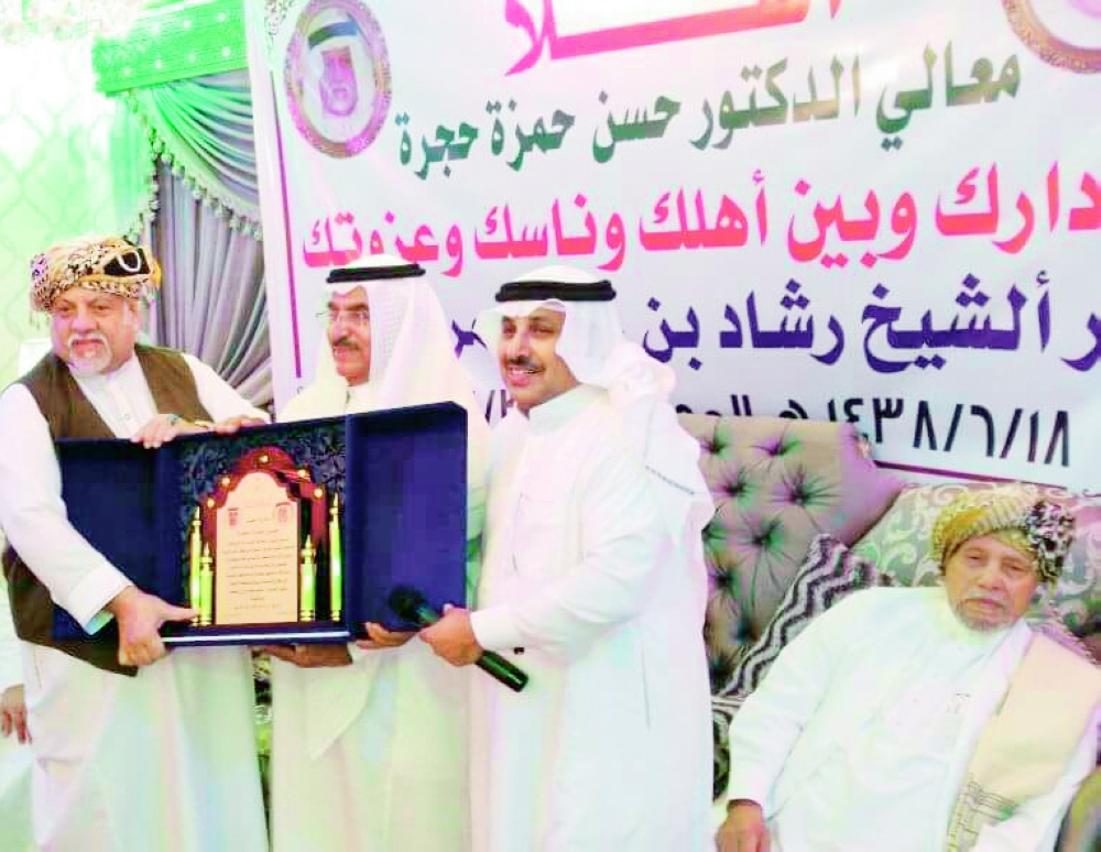 كرمت ديوانية رشاد سمر الدين، الدكتور حسن حمزة حجرة رئيس بلدية الطائف السابق، بحضور نخبة من المثقفين والإعلاميين ورجال الأعمال والفنانين.
