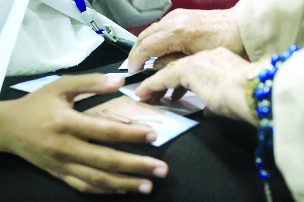 مسنّة تشارك في فقرة ألعاب الذاكرة. (عكاظ)