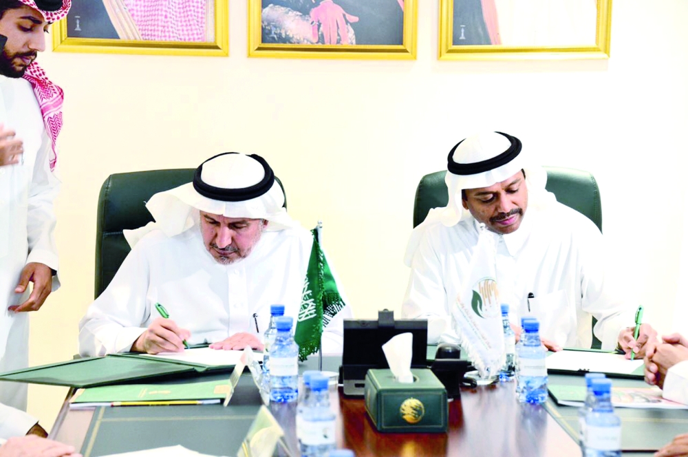 الربيعة ومشاط أثناء توقيع مذكرة التعاون. (عكاظ)