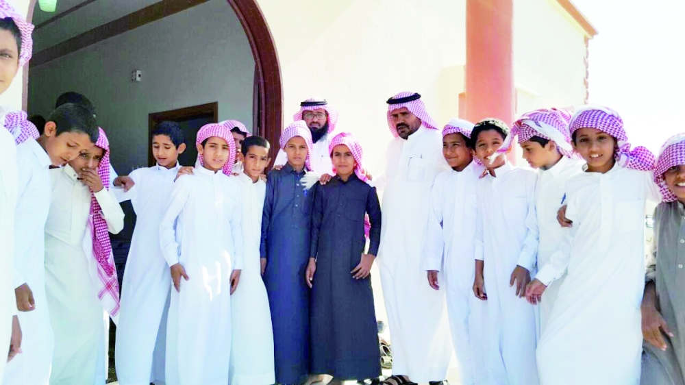 الطلاب أثناء زيارتهم لمواساة أسرة الشمراني. (عكاظ)