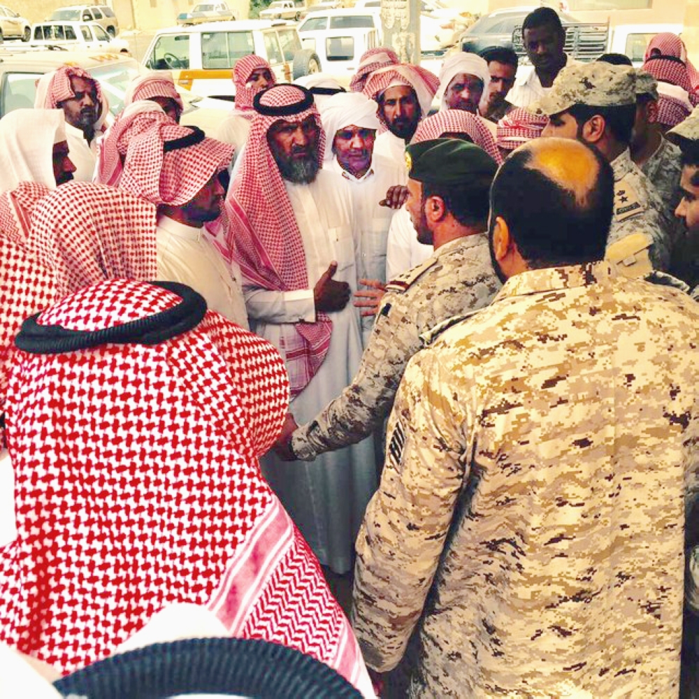 ذوو الشهيد الحارثي يتلقون العزاء. (عكاظ)
