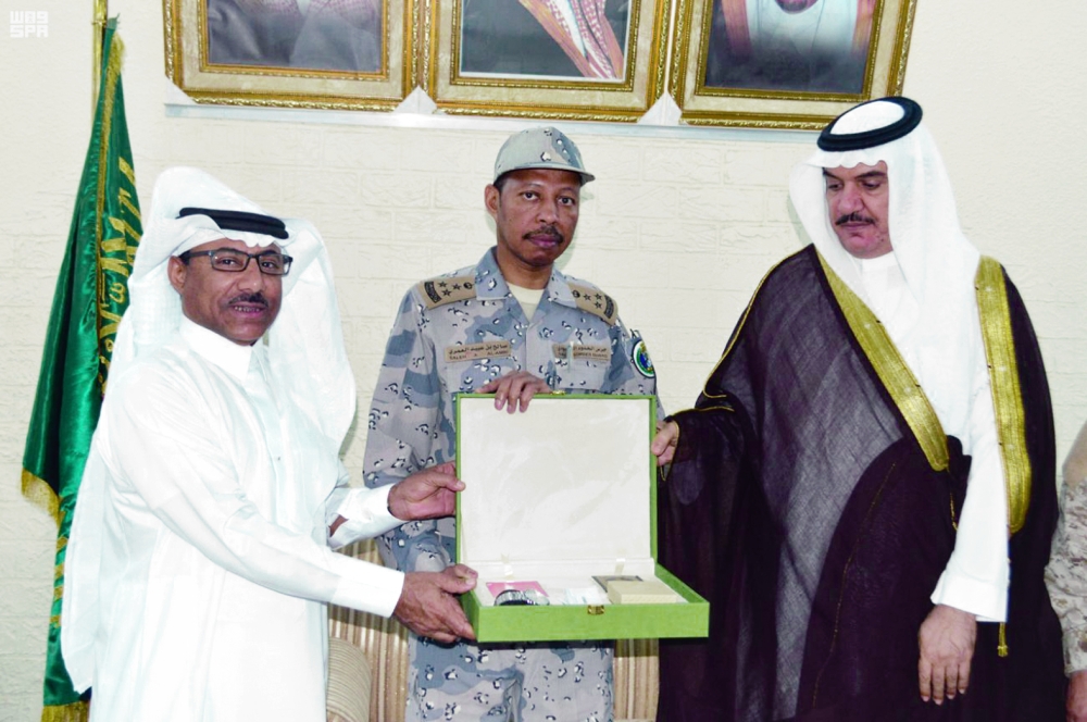 محافظ الطوال مكرما أحد الجنود البواسل. (عكاظ)