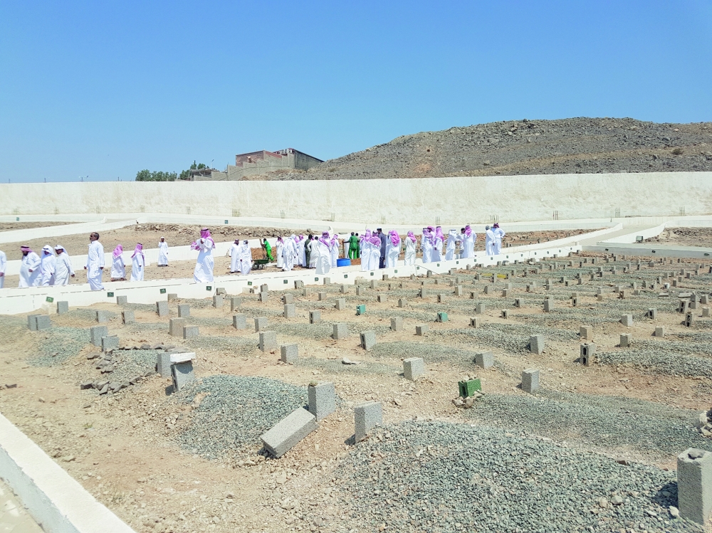 عدد من المشيعين أثناء موارة الفقيد مقابر بريمان. (عكاظ)