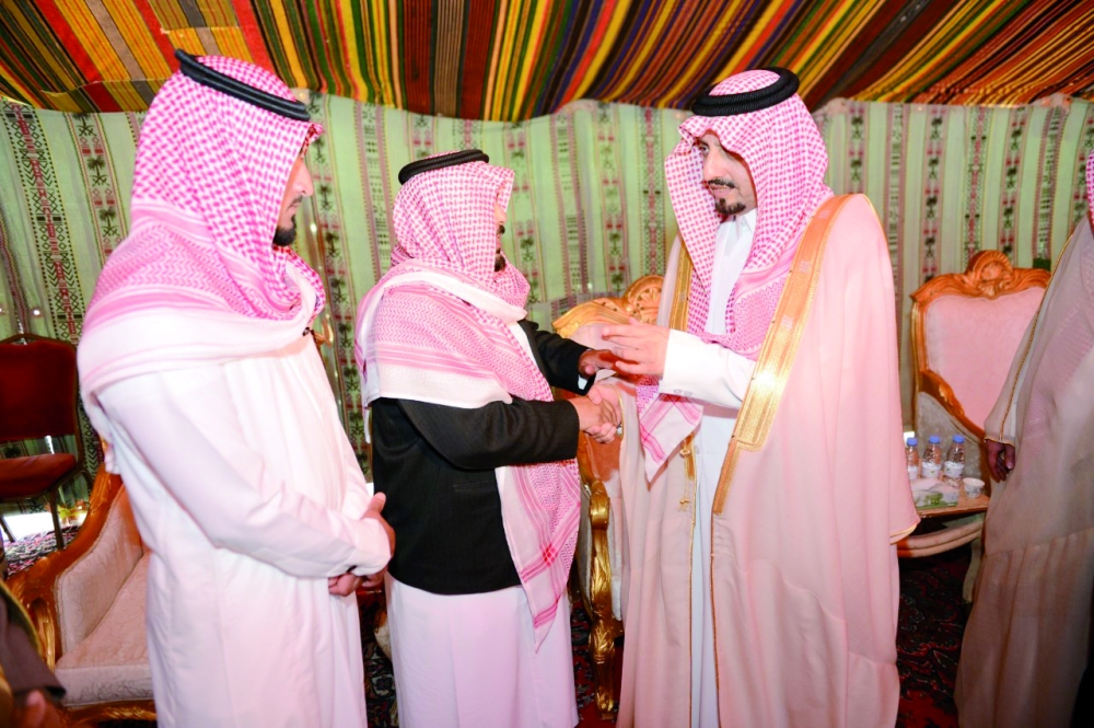 الأمير فيصل بن خالد مواسيا ذوي الشهيد العسيري. (عكاظ)