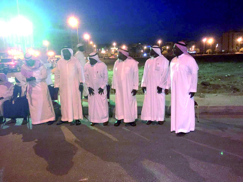 آل ملئ وفلاتة خلال استقبالهم المعزين. (عكاظ)
