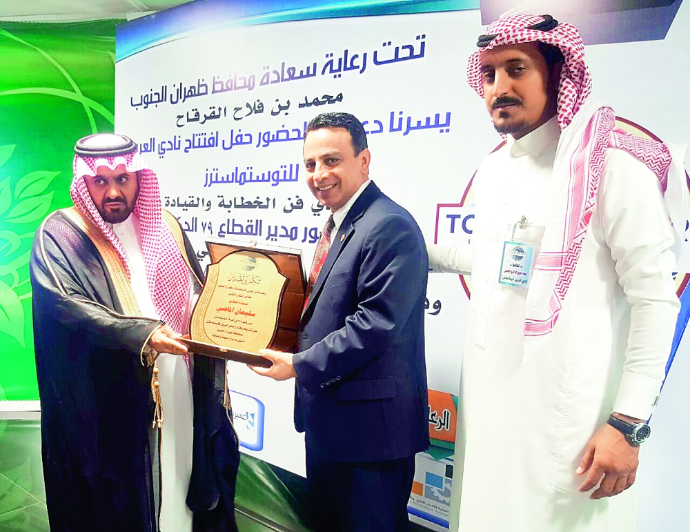 افتتح نادي العرين للتوستماسترز، نادي فن الخطابة والقيادة، على مسرح الكلية التقنية بحضور محافظ ظهران الجنوب محمد بن فلاح القرقاح ومدير القطاع 79 الدكتور سليمان الماضي ومديري الإدارات الحكومية.