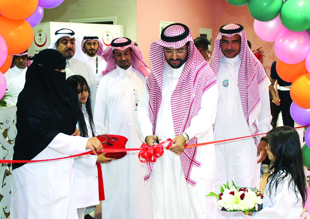 الغامدي مفتتحا معرض التمريض. (عكاظ)