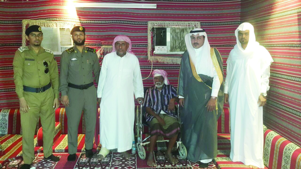 العمري مع ذوي الشهيد عقيلي. (عكاظ)