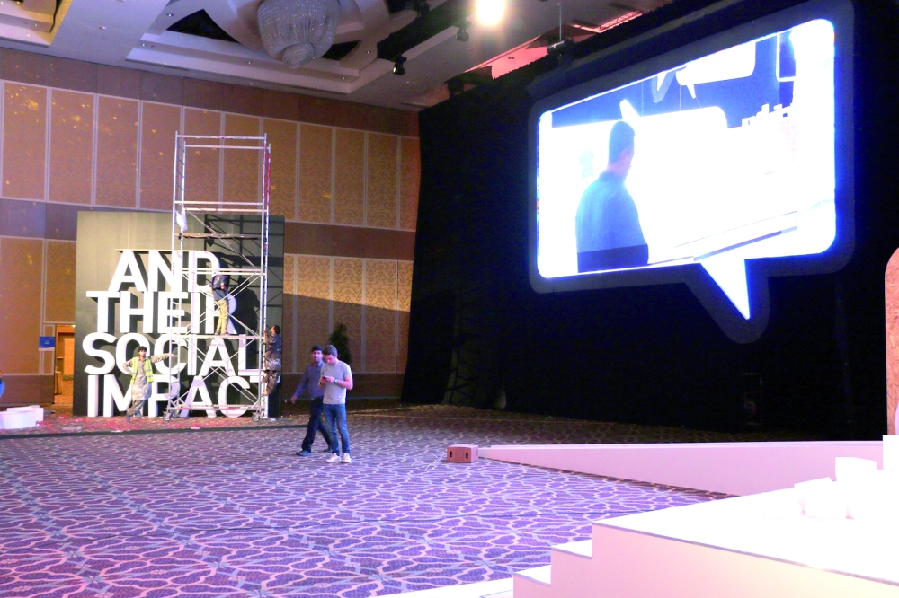 الاستعدادات في قاعة المنتدى. (عكاظ)