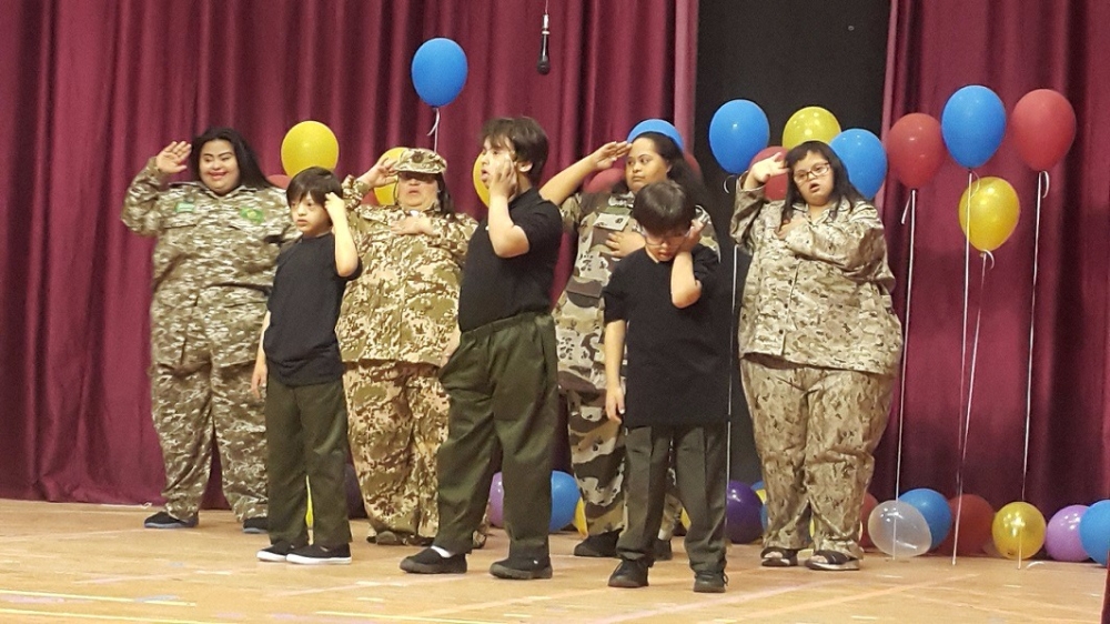 ترجم أطفال المركز الوطني للتدخل المبكر لمتلازمة داون، حب الوطن والولاء خلال عرض قدموه في حفل ختام العام الدراسي لهذا العام بحضور أمهات الطلاب والطالبات والكادر الوظيفي، الذي حاكي أيضا البطولات التي يسطرها الجنود البواسل المرابطون على الحد الجنوبي.
