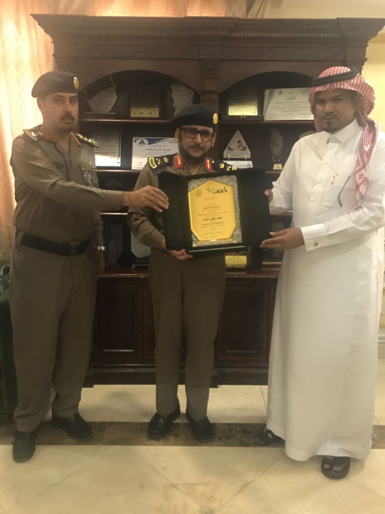 كرم مدير الدفاع المدني في منطقة مكة المكرمة اللواء سالم المطرفي، ومدير الدفاع المدني في الجموم العقيد سعد فريحان الربيعي كلا من مدير شرطة الجموم العقيد سعد البلادي، وفايز العتيبي لمشاركتهم الفاعلة في إنجاح برنامج القائد القدوة الذي نظمته إدارة الدفاع المدني في الجموم.