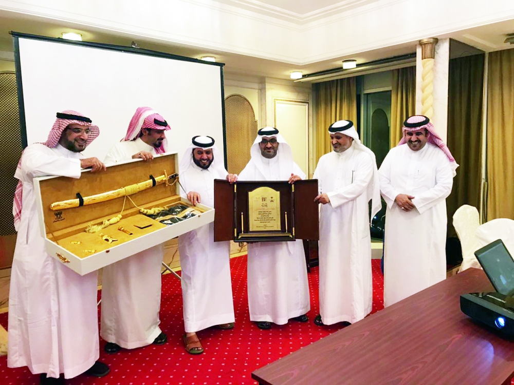 الزهراني متسلما الهدايا التذكارية. (عكاظ)