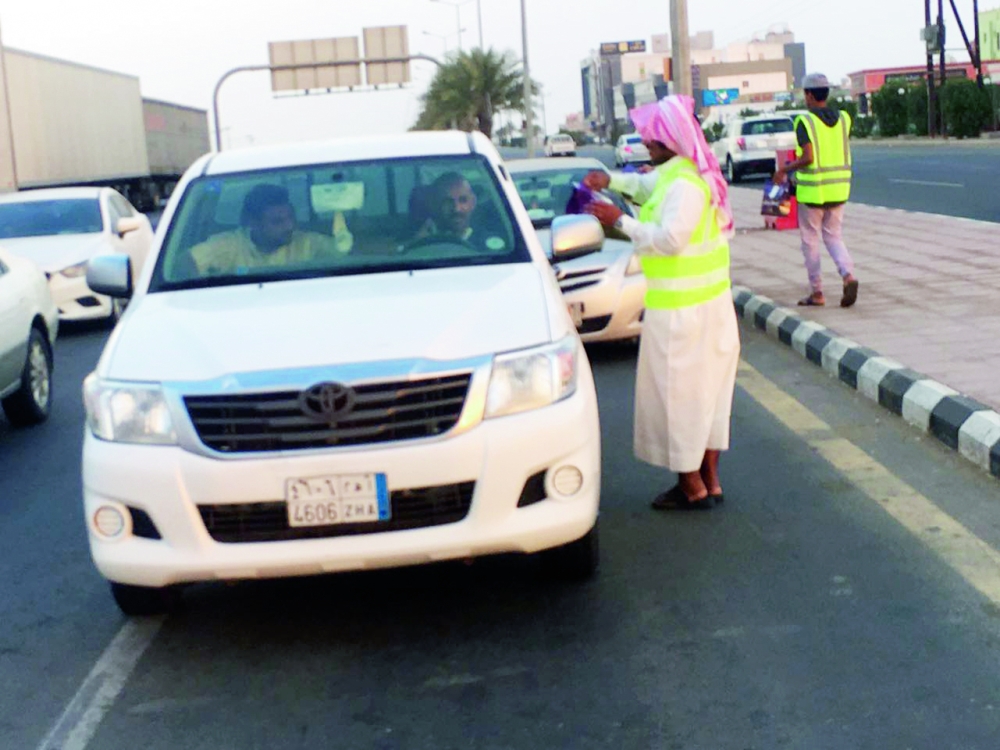 توزيع وجبات الإفطار على العابرين في القنفذة. (عكاظ)