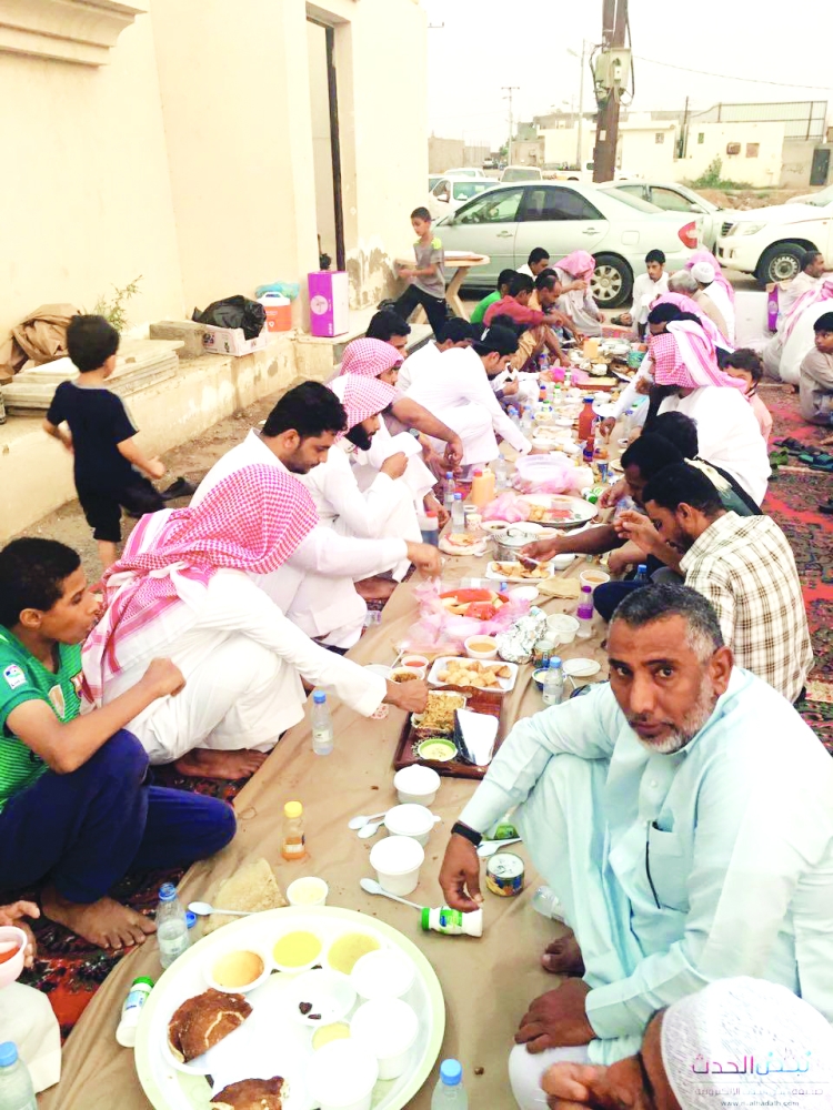 أهالي القرية على مائدة الإفطار. (عكاظ)