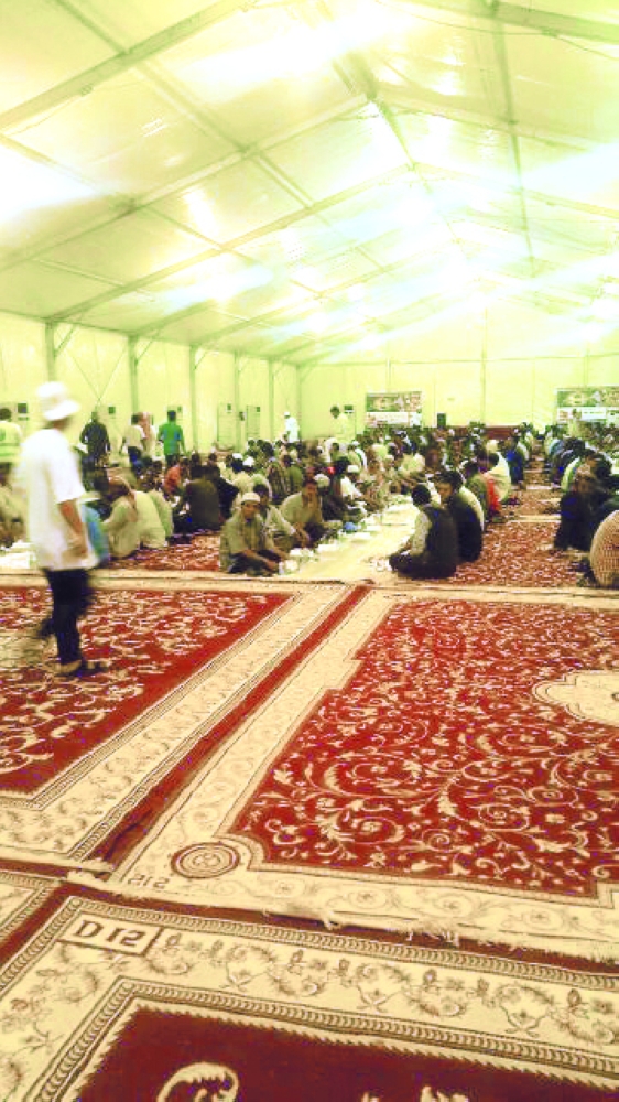 مرتادو المخيم خلال الإفطار. (عكاظ)